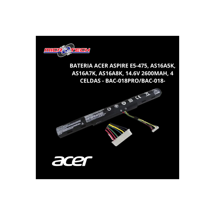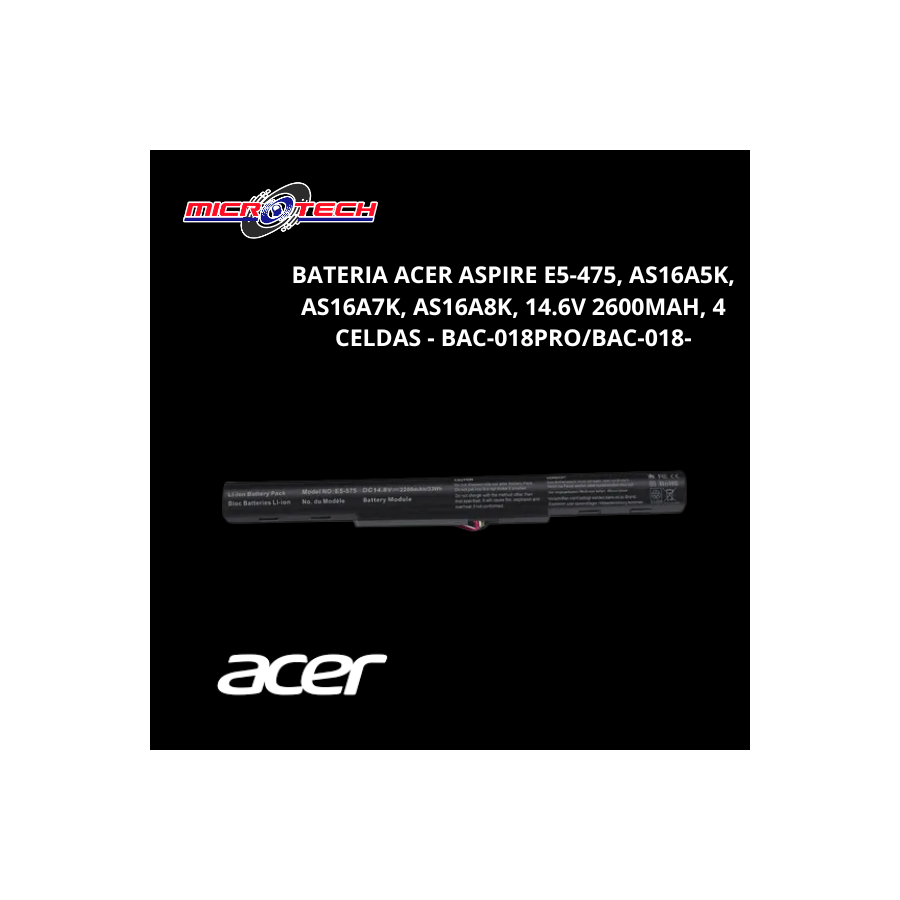 BATERIA ACER ASPIRE E5-475, AS16A5K, AS16A7K, AS16A8K, 14.6V 2600MAH, 4 CELDAS - BAC-018PRO/BAC-018-
