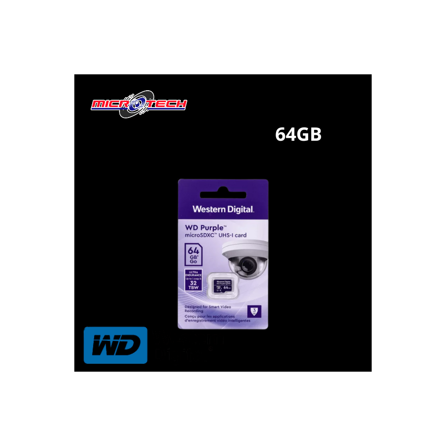 MICRO SD WESTERN DIGITAL PURPURA 64GB CAMARAS DE SEGURIDAD - WDD064G1P0C