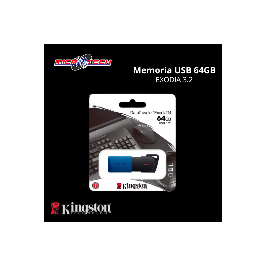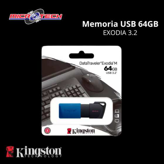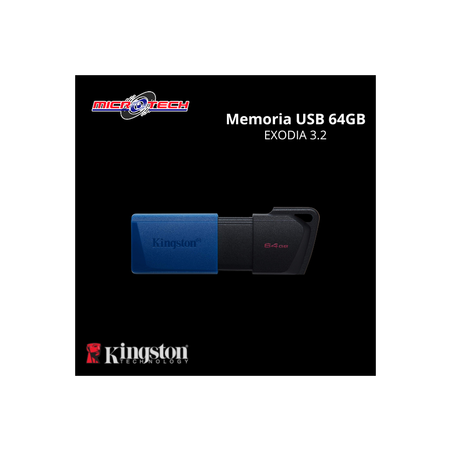MEMORIA USB KINGSTON 64GB DATATRAVELER EXODIA M RETRACTIL AZUL - DTXM/64GB