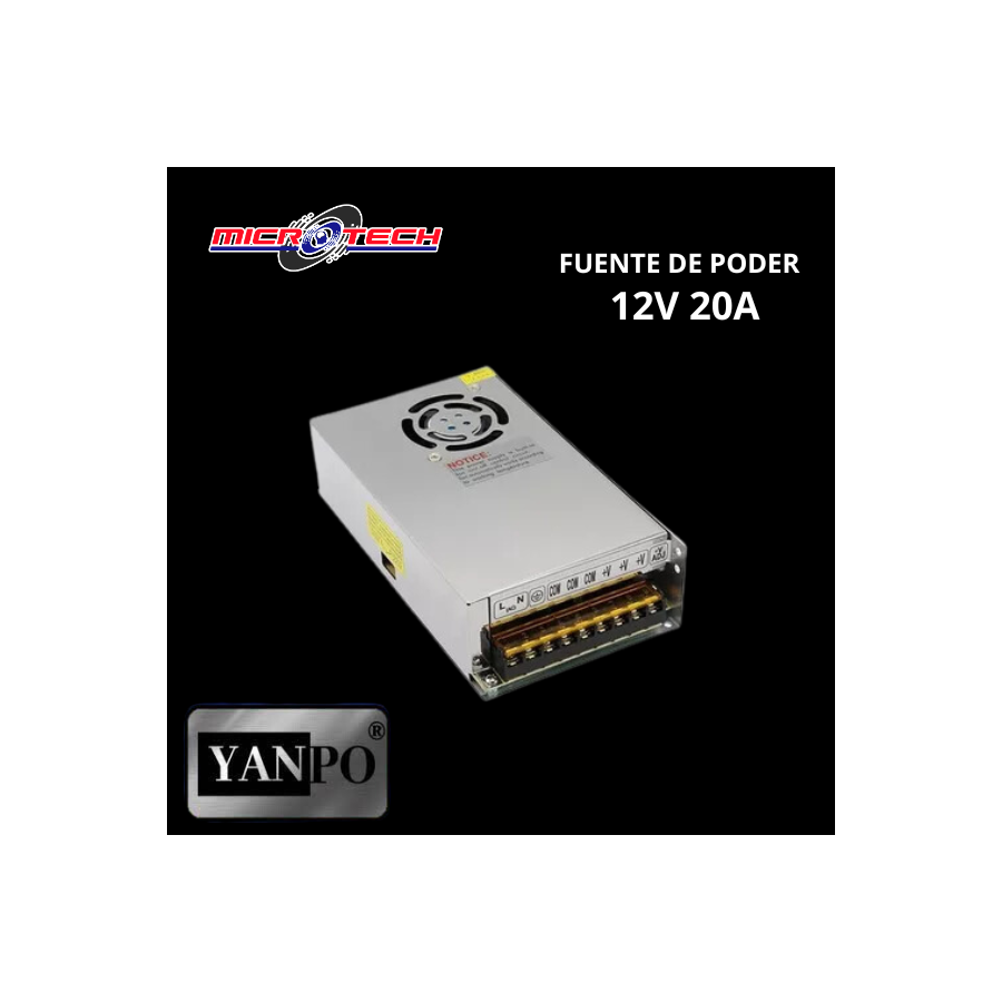 Entrada: AC 110-220V / 50-60Hz; Salida: DC 12V, 20A / 240w.
